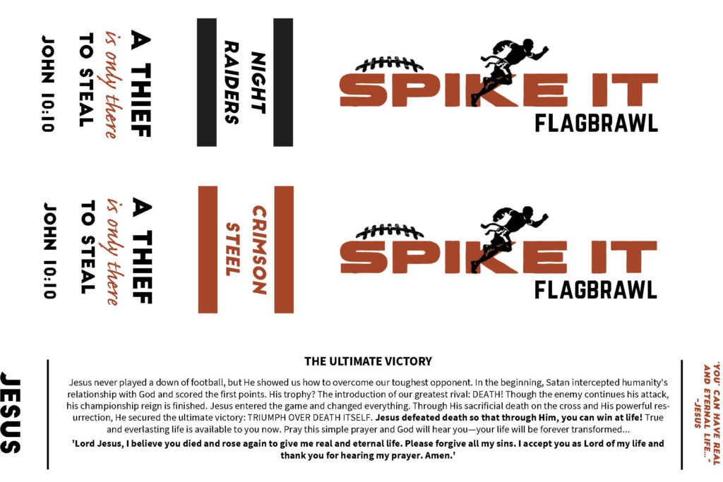 Each Spike It participant takes home their game-worn flag with the Gospel message already printed on it. These unique keepsakes transform standard football equipment into powerful ministry tools, allowing players to carry the spiritual impact of the event with them.